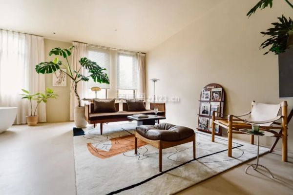 壁炉台以及阳台地面都使用了微水泥手工批刮的工艺,边角预埋了黄铜条,线条流畅,也更耐磕碰。看上去整个素色的空间简单高级的同时,也不失暖意。